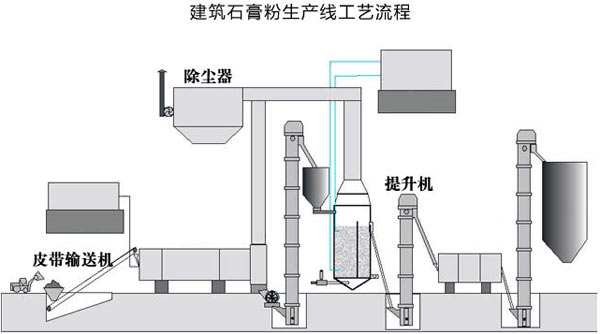除塵系統是石膏生產線中不可以或缺的設備,由于被磨的原料中含有水份,并在研磨過程中蒸發變為氣體,導致循環風路中的風量增加,此項增加的風量,從大旋風收集器和鼓風機之間的管道引入袋式除塵器,除去空氣中的粉塵,然后排到環境中,確保環境清潔。